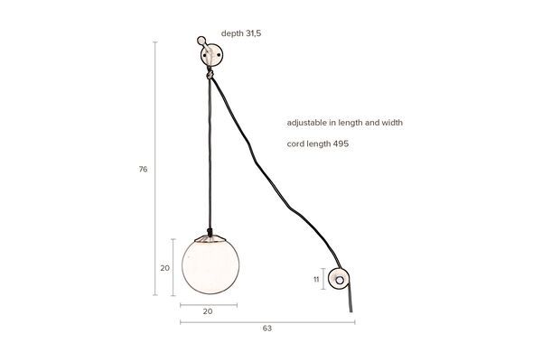 Mit ihrem Metallhaken und ihrem originellen Aussehen verschönert diese Lampe sofort jede Wand, an der sie befestigt ist. Das angenehme Licht, das sie verbreitet, schafft unabhängig von der Art der Dekoration eine reizvolle Atmosphäre.