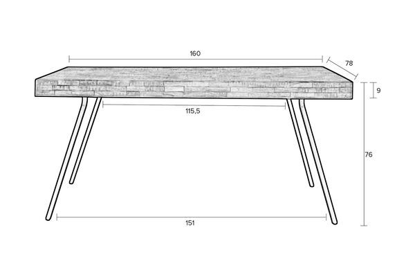 Der Tisch Suri 160 X 78 ist auf seinen vier geneigten Stahlbeinen sehr stabil und bietet ein nüchternes und elegantes Design, das dank seines Holzes mit schattierten Farbtönen Ihr Esszimmer veredelt.