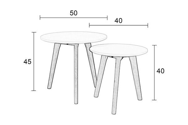 Niet één, maar twee bijzettafels. Het Bodine duo is een eerbetoon aan het Scandinavische design. Hier geen franje, maar eenvoudige lijnen in combinatie met natuurlijke materialen. Deze twee tafels zijn gewoon opgebouwd uit massief eikenhouten poten en een blad in wit gelakt medium.