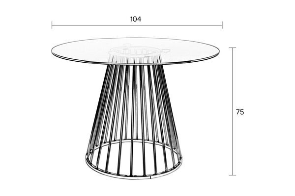 Onder de basis bevindt zich een cirkelvormige kooi met gouden staven, die naar de grond uitwaaiert. Door zijn kleine omvang is het gemakkelijk om zijn plaats te vinden, zelfs in een kleine kamer. De combinatie van deze elementen levert een eettafel op met een echte persoonlijkheid.
