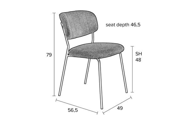 Met zijn goudkleurige metalen structuur geeft de Jolien stoel uw interieur direct klasse. In combinatie met een marineblauwe stoffen zitting is het zowel verfijnd als sober. Naast het feit dat het een lust voor het oog is, geeft het door zijn zachte rondingen een uitstekende ondersteuning.