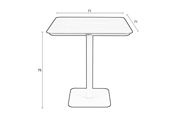 Der Tisch Vondel ist leicht, aber stabil und verfügt über abgerundete Ecken, die seinem geometrischen Design einen weichen Touch verleihen. Egal, ob Sie einen großen Garten oder einen kleinen Balkon haben, dieser Tisch bietet eine praktische und zugleich ästhetische Lösung, um den Aufenthalt im Freien zu genießen. Sein Gewicht von 21 kg garantiert eine gute Stabilität, lässt sich aber dennoch leicht nach Bedarf verschieben.