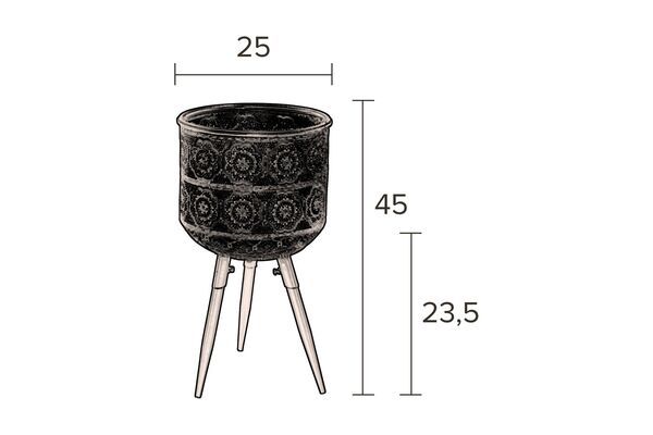 Der Botanische Pflanzentopf von Dutchbone bietet Ihnen einen schicken und eleganten Stil mit einem mit Goldgehämmerten Mustern verzierten Eisentopf. Der Topf wird von Füßen angehoben, die ebenfalls mit Goldpulver beschichtet sind.