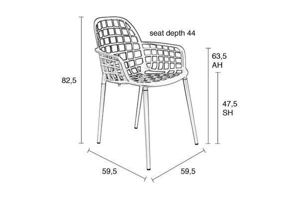 Dieses Produkt kann dank seiner Konstruktion aus widerstandsfähigen Materialien sowohl im Innen- als auch im Außenbereich eingesetzt werden. Sein Aluminiumrahmen ermöglicht das Stapeln von bis zu vier Stühlen. Ausgestattet mit schwarzen Kunststoffkappen sind die Beine geschützt. Dieser stabile Stuhl ist dennoch leicht genug, um einfach bewegt werden zu können.