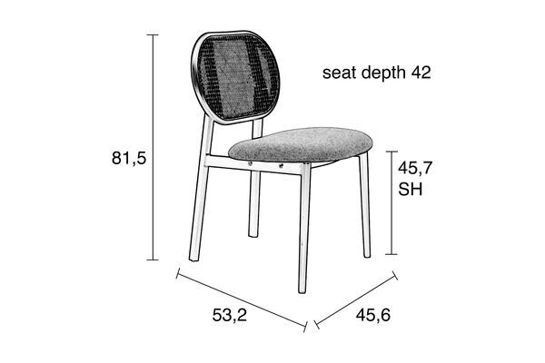 Dieser Stuhl kombiniert eine Rückenlehne aus Rattan im Retro-Stil, eine Sitzfläche aus Polyester in einem dezenten Hellgrau und geradlinige Beine aus Metall für einen modernen Touch. Mit einer Sitztiefe von 42 cm ist der Stuhl alltagstauglich und dennoch stilvoll.