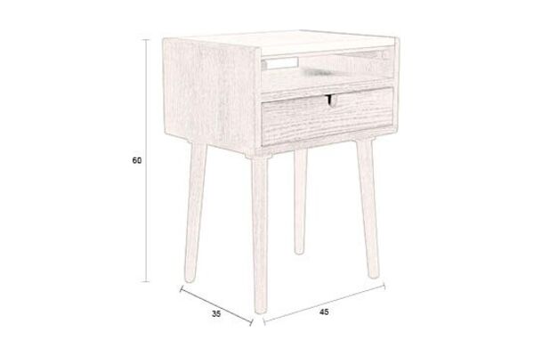 Der beigefarbene Holz-Nachttisch Arda verkörpert einen kühnen Vintage-Stil, der durch zeitgemäße Linien aufgewertet wird. Seine beigefarbene Farbe erinnert an die sanfte Wärme früherer Innenräume, während seine subtile Holzstruktur zu harmonischen Kombinationen mit einer Vielzahl von Einrichtungsstilen einlädt. Mit seinen perfekten Maßen von 35x45x60 cm fügt er sich mühelos in verschiedene Räume ein, von schick bis bohemian, und verleiht ihnen einen Hauch von Leichtigkeit. Die Kombination aus dem Holz mit seinen zarten Nuancen und dem von den 1950er Jahren inspirierten Design mit eleganten konischen Beinen verleiht diesem Stück einen einzigartigen Charakter. Stellen Sie sich vor, wie er neben einem kuscheligen Bett steht, mit einigen sorgfältig gestapelten Büchern und einer eleganten Leuchte dekoriert ist und so eine ideale Leseecke schafft. Dieser Nachttisch lädt zum gemütlichen Beisammensein ein und vermittelt gleichzeitig einen sanften Eindruck von skandinavischem Erbe. Seine zeitlose Ästhetik macht ihn zu einem perfekten Begleiter für ruhige Nächte und helle Morgen, an denen jedes Detail eine Geschichte von Komfort und Eleganz erzählt. Der Arda-Nachttisch ist nicht nur ein Möbelstück, sondern ein Versprechen von Sanftheit und Stil im Herzen Ihres Schlafzimmers.