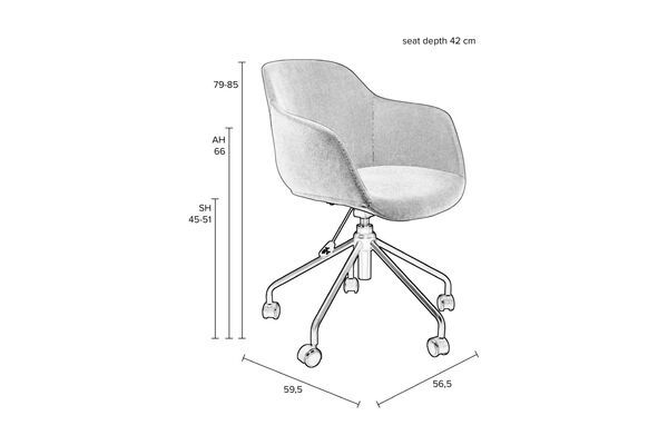 Entdecken Sie den Bürostuhl Junzo Rib, der entworfen wurde, um Stil und Komfort in Ihrem Arbeitsbereich oder Ihrer Wohnung zu vereinen. Mit einem eleganten taupefarbenen Stoffbezug versehen, verleiht dieser moderne Stuhl Ihrem Büro einen Hauch von Schlichtheit und Klasse. Mit seinen optimalen Abmessungen von 59,5 cm Länge, 56,5 cm Tiefe und einer Höhe von 79 cm ist er perfekt proportioniert, um sich an verschiedene Arbeitsumgebungen anzupassen.