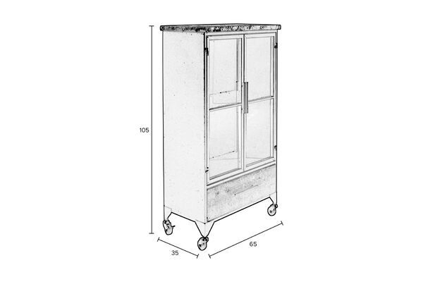 Dieser einzigartige Schaukasten verfügt über Glastüren, die mit einem kompletten Magnetschloss verschlossen werden können, um Ihre Wertsachen zu sichern. Außerdem ist er mit praktischen Rollen ausgestattet, damit er sich leicht in Ihrem Raum bewegen lässt, und zwei der Rollen sind mit Bremsen ausgestattet, damit er stabil steht, wenn er einmal an seinem Platz ist. Ob für den Einsatz im Wohnzimmer, im Büro oder in einem Ausstellungsraum, die Ferre Vitrine bringt eine perfekte Mischung aus Funktionalität und Stil mit sich.