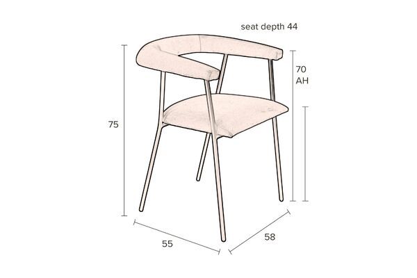 Imaginé par Dutchbone et conçu entièrement par des artisans aux Philippines, ce fauteuil au design aéré se distingue par son dossier tubulaire et sa texture au toucher velours.