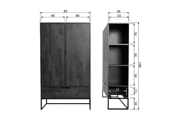 Modello Silas 2-portes cabinet chendre brosse noir [fsc]