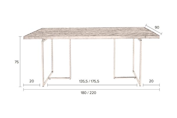 Dutchbone presenta questa creazione con finiture luminose e colorate. Questo tavolo da pranzo rivela superbi motivi nel cuore del piano in acacia con dettagli venati che contrastano con le gambe in ottone.