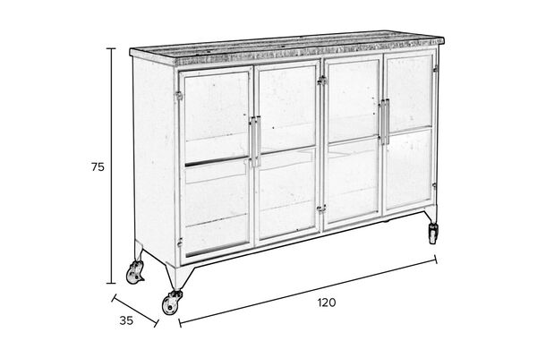 Dotata di ante in vetro che si chiudono con una serratura magnetica, la credenza Ferre permette di mettere in mostra gli oggetti decorativi, le stoviglie preferite o i libri. Il design su rotelle facilita lo spostamento del mobile, mentre due delle ruote sono dotate di freni per garantire una perfetta stabilità una volta posizionate.