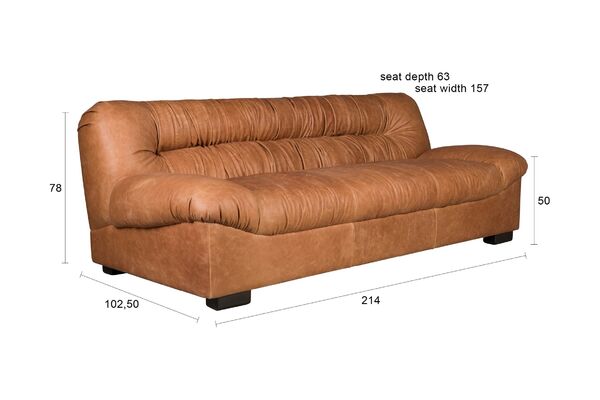 Holen Sie sich mit dem Douglas-Sofa einen Hauch von Wärme und Gemütlichkeit in Ihr Zuhause. Dieses einzigartige Stück, das der Ästhetik der 50er Jahre entlehnt ist, erinnert an eine Welt, in der sich Design mit Gemütlichkeit vermischt. Seine satte und beruhigende hellbraune Farbe passt perfekt zu Einrichtungen, die Modernität und Retrogeist vereinen. Das edle und zugleich strukturierte Rindsleder lädt zum Entspannen ein und umhüllt Ihre gemeinsamen Momente mit einem unvergleichlichen Komfort. Die großzügig gepolsterte Rückenlehne, die von zarten Falten geprägt ist, die sich um eine horizontale Naht herum treffen, verleiht einen Hauch von Raffinesse, bleibt aber dennoch verspielt. Die abgerundeten Formen und die Holzbeine unterstreichen das einladende und gemütliche Ambiente, das zu geselligen Stunden einlädt. Ob in einem gemütlichen Wohnzimmer oder einem zeitgenössischen Wohnbereich, dieses Sofa wird zum Herzstück und bietet eine umhüllende Atmosphäre, in der man sich wie zu Hause fühlt. Lassen Sie sich von dieser Kombination aus Komfort und Eleganz verführen, die in Ihnen eine nostalgische Sanftheit weckt.