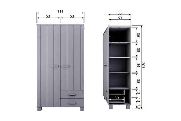 Modelo Dennis armoire pin bÉton gris [fsc]