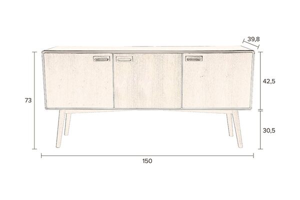 Es como ese bufé que sale de la casa de nuestra abuela. Este estilo vintage está de nuevo de moda y este buffet es el mejor ejemplo de ello. Hecho de MDF enchapado en nogal en color natural, este aparador tiene 3 puertas con tiradores empotrados. Las patas son de madera de fresno con acabado en nogal. Las dimensiones del aparador son 39 cm por 150 cm con una altura de 73 cm. Inspirado en el estilo de los años 50, este gran aparador sorprende con sus líneas francas y cuadradas. ¡Sorprende a sus amigos con este mueble en su salón!