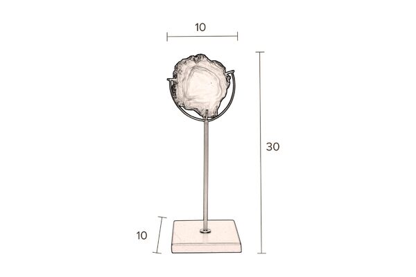Con su luz, el candelabro Gema de 30 cm de altura embellece un disco de piedra natural, cortado y pulido.