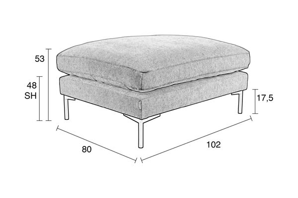 Su gran tamaño (102 cm por 80 cm, para una altura de 53 cm) lo hace muy práctico. El taburete de verano no es sólo un reposapiés. Puede ser usado como un asiento extra e incluso como soporte para una bandeja de comedor.