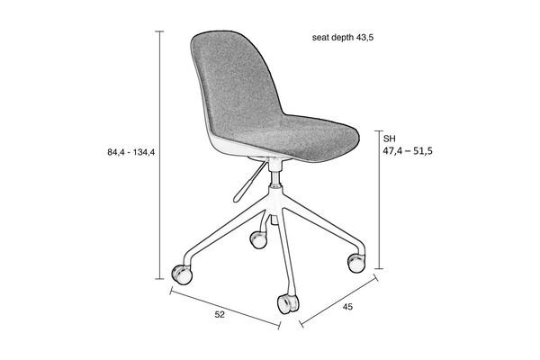 Une variante sans roues, la Albert Kuip Swivel, est également disponible, offrant le même niveau de confort dans un format idéal pour les salles de conférence. Avec un poids de seulement 7 kg, cette chaise combine légèreté et robustesse, simplifiant ainsi son déplacement et son intégration dans différents espaces de travail ou à domicile. Faites de la place pour le style décontracté et la fonctionnalité avec la chaise de bureau Albert Kuip.