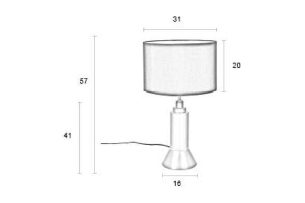 D'une hauteur de 57 cm et mesurant 31 cm de longueur et de profondeur, cette lampe compacte est parfaite pour les espaces où chaque centimètre compte. De plus, avec un poids de seulement 1 kg, elle est facile à déplacer et à installer où vous le souhaitez.