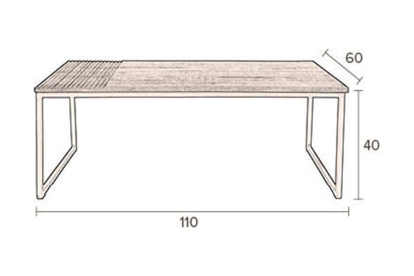 Mélange de styles pour cette belle table basse aux dimensions généreuses (110cm sur 60cm, hauteur 41cm). Le cadre et les pieds sont en métal noir reliés dans la largeur par des lignes à angle droit. Cela donne un look industriel. Le plateau est en bois de manguier marron foncé pour le côté vintage. Un quart du plateau est strié sur la largeur. Combinaison de matériaux, originalité du plateau et belle surface pour cette jolie table de salon.