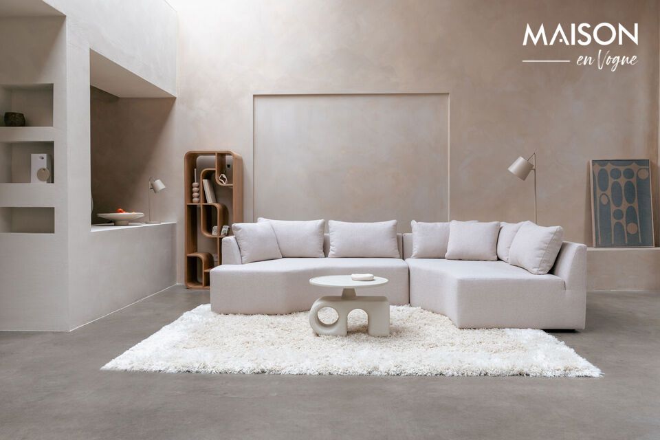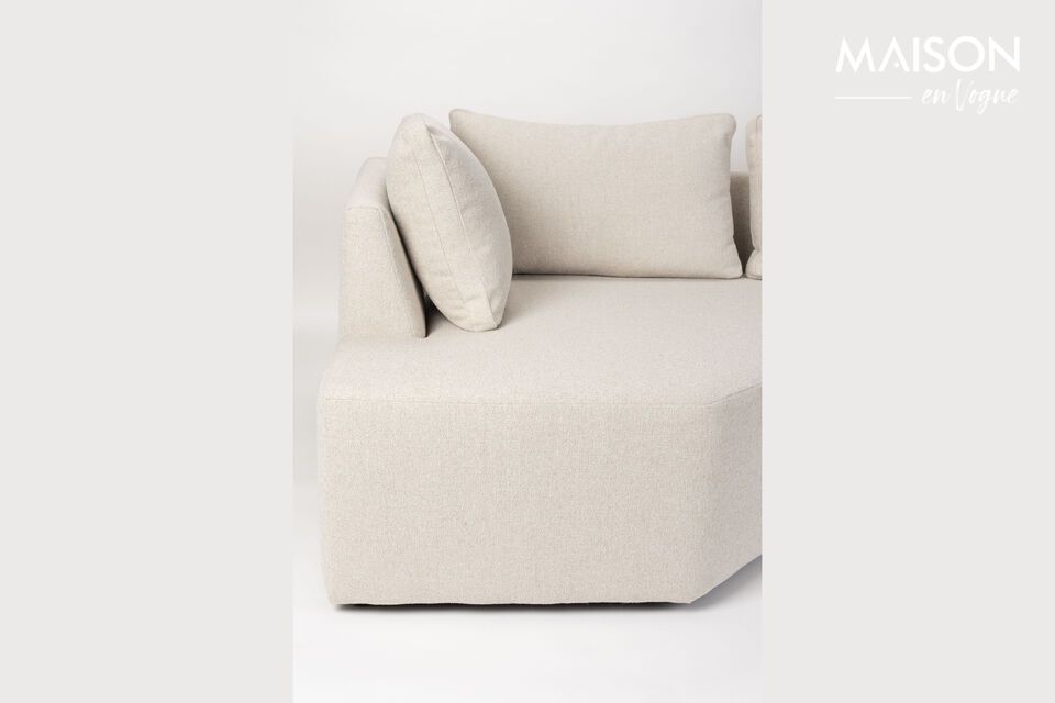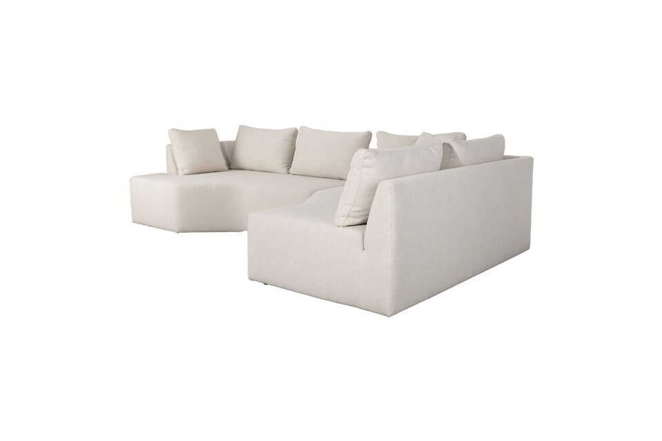 Immerse yourself in the contemporary world of the Prosper beige polyester 5-seater straight corner sofa, where modern comfort is combined with sleek aesthetics. With its straight lines and appropriate shapes, this sofa subtly evokes Brutalist architecture, combining visual power with welcoming warmth. Beige, a gentle invitation to serenity, blends harmoniously with a variety of ambiances from minimalist living rooms to more traditional interiors, blending like a discreet star into the sky of your decor. Its delicately textured yet resilient polyester surface is both pleasant to the touch and easy to care for, allowing you to enjoy everyday life without compromise. Imagine enchanting evenings surrounded by loved ones, a cup of tea at hand on a small table. Every space in this sofa offers the opportunity to transform an intimate corner into a convivial living space. Both functional and aesthetic, the Prosper is not just a piece of furniture, it's a real cocoon, ready to welcome warm exchanges and create unforgettable memories.