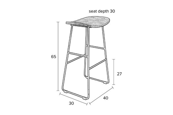 The White Label Living brand imagined the Tangle black counter stool, a piece with a minimalist design. Its slightly curved recycled teak seat is made up of several squares of wood giving relief.