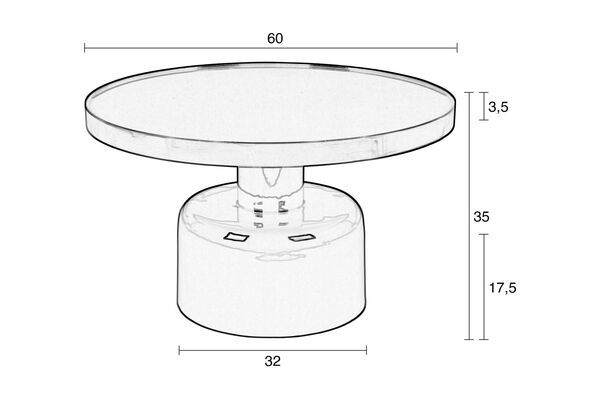 Discover the Glam coffee table in tinplate, an elegant piece that introduces a touch of glamour into any living space. With its generous dimensions of 60 cm in length and width, and a comfortable height of 35 cm, this table is both practical and chic.