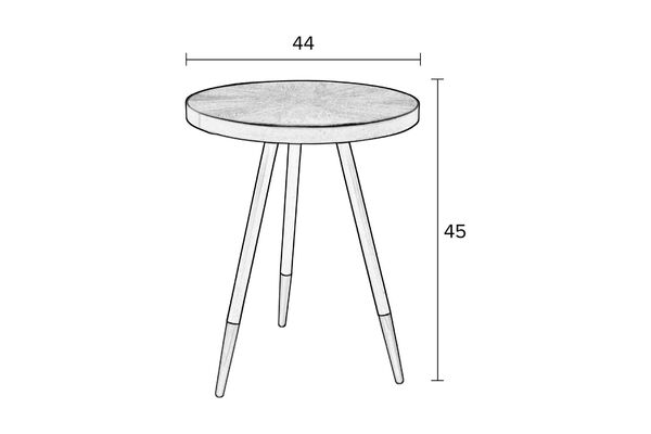 The Denise side table features long, thin black and gold legs that accentuate the refinement of its top. The top is veneered in ash wood with a finish echoing the elegant shade of walnut. To complete its distinction, the table is encircled in gold, a nod to the nobility of its legs.