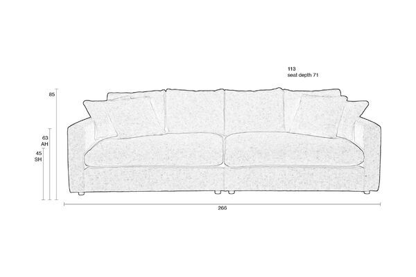 This sofa features a generous seat, both in size and comfort. It displays a seat density of 35kg/m3 in high quality foam. As for the fabric, it has an abrasion resistance of 80000 Martindale. Its seat cushions are removable for easy maintenance.