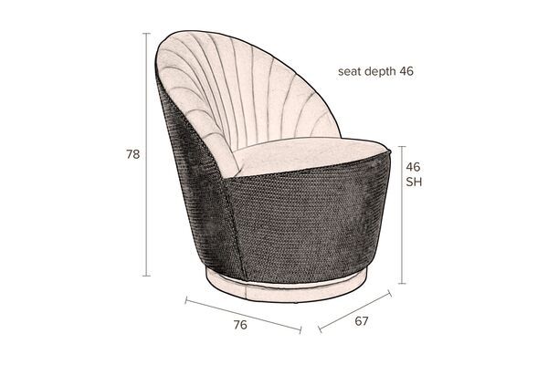 You'd think this chair came straight out of a Parisian boudoir in the '20s. With its rounded shapes, it opens like a beautiful shell of fabric. It is made of polyester (55%) and cotton (45%). Its pretty whisky color will make your head spin. Not only your head, because the base of this clever little armchair is fully swivelling. Unsuspected at first glance, this amazing feature provides extra comfort. A beautiful, comfortable and fun object that will quickly find its place in your home.