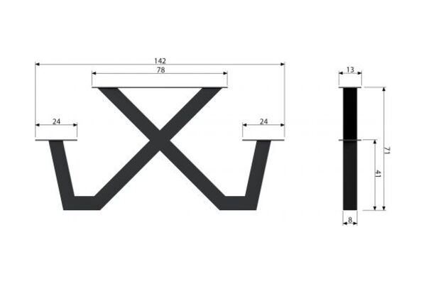 Il telaio in tubolare d'acciaio verniciato a polvere nero opaco misura 80 mm x 80 mm ed è quindi robusto e resistente. Con un'altezza di 70 cm, una larghezza di 142 cm e una profondità di 13 cm, il supporto per tavolo è compatibile con una varietà di dimensioni di piani d'appoggio. Venduto singolarmente. Pianale venduto separatemente.