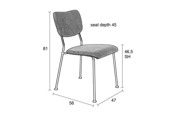 La sedia Benson Dark Blue sembra esibire un design sobrio e ordinato con il suo rivestimento morbido. Il suo aspetto di velluto gli conferisce un carattere senza tempo che permette di collocare questo oggetto nella stanza di vostra scelta. Le sue quattro gambe dritte terminano con dettagli del tutto inusuali per accentuare l'originalità del loro stile. Sono dotate di puntali che assomigliano a piccole scarpe da sedia, dando loro un aspetto bizzarro e divertente.