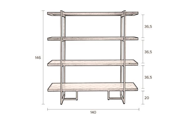 Con un'altezza di 146 cm, una larghezza di 140 cm, questa libreria ha tutto ciò che serve. Offre ampio spazio di stoccaggio su 4 ripiani di 4 cm di spessore e 40 cm di profondità. Lo spazio tra ogni ripiano è di 36,5 cm. La distanza dal pavimento è di 20 cm.