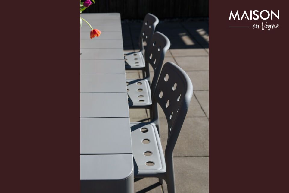 La sedia Serra incarna una semplicità chic per i vostri spazi esterni. Il suo design elegante e contemporaneo evoca linee industriali e si inserisce armoniosamente in un ambiente naturale. Immaginatela con cuscini dai colori vivaci sul bordo di una terrazza assolata o circondata dal verde, dove diventa il punto focale dei vostri pomeriggi estivi. Realizzata in polipropilene, questa sedia combina leggerezza e robustezza, rendendola ugualmente adatta al vostro patio o a un ambiente più commerciale, come una mensa o un bar dallo stile decisamente moderno. Il grigio sobrio del suo design offre un equilibrio perfetto, consentendo a questa sedia versatile di completare una varietà di elementi d'arredo, dai tavoli in legno grezzo agli accessori in metallo. Aggiungendo questo pezzo al vostro arredamento, non solo creerete un angolo pratico ed esteticamente piacevole, ma incoraggerete anche momenti di condivisione e convivialità. Che si tratti di cenare all'aperto o di rilassarsi, la sedia Serra promette di elevare la vostra esperienza all'aperto, aggiungendo un tocco di sobria raffinatezza.