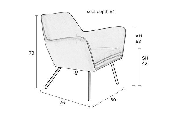 Wat betreft de voeten, die dun zijn en gemaakt van zwart metaal, zijn de afstand en de helling van de voeten gunstig voor rust en comfort. Voeg daar een afneembaar zitkussen aan toe en hier is een fauteuil waar het goed toeven is...