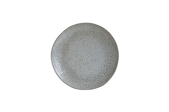 Assiette plate en grès de couleur grise mouchetée de bleu. Le matériau est très agréable et son look rétro lui confère un côté rustique authentique.