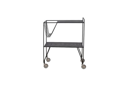 Cette desserte XXL en acier de couleur noire, très design et facile à manoeuvrer avec ses quatre roulettes, vous sera vite indispensable. Elle dispose de deux niveaux et d'une section spécialement adaptée aux magazines (ou à d'autres objets suivant votre convenance).