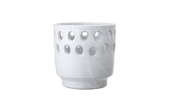 Parmi les indispensables accessoires d'une décoration élégante, une bougie crée toujours une atmosphère. Avec ce récipient ponctué d'ouvertures rondes, une douce lumière est diffusée avec des effets très graphiques. Il peut aussi se transformer en élégant cache-pot original pour recevoir une plante.