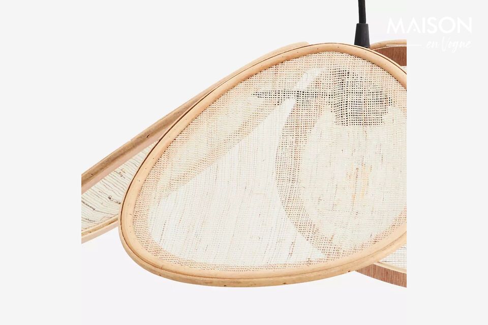 Fabriqué en rotin de haute qualité et orné d'accents en lin, ce plafonnier dégage une ambiance chaleureuse et accueillante. Le design complexe du rotin crée une forme florale captivante, ajoutant une touche de beauté naturelle à n'importe quelle pièce.