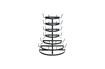 Ce rack en métal possède 6 étages, il est laqué en noir. Chaque étage en demi cercle est équipé de crochets dressés pour y suspendre de la vaisselle comme des tasses par exemple. Il peut être adossé à un mur car la partie arrière est plate. Pratique pour faire sécher des bouteilles et décoratif pour exposer de la vaisselle de manière originale.