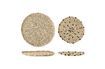 Ces deux assiettes ont un diamètre de 20 et 25,5cm. Elles sont très naturelles, réalisées à partir d'herbe de mer. L'une est piquetée de blanc et l'autre de noir, ce qui rehausse la couleur paille des assiettes.