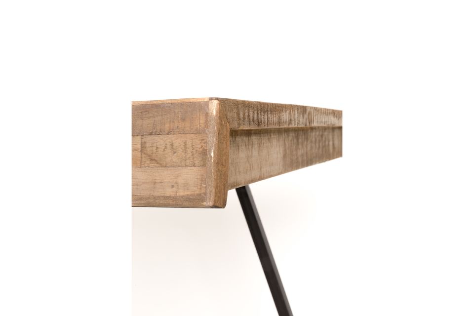 Un beau look vintage, c'est ce que vous apporte la table Suri grâce à son épais plateau en tek recyclé qui contraste avec son fin piétement en acier noir au style industriel. Elle donnera sans conteste un fort cachet à votre intérieur. Le plateau est constitué de plusieurs planches de tek anciennes, toutes différentes les unes des autres, ce qui donne à chaque exemplaire un cachet unique. Il n'y pas deux tables Suri identiques !