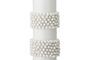 Ce vase intégralement blanc ne sort de sa simplicité que par quelques protubérances placées à deux endroits de son corps tout en hauteur, pour un style résolument moderne. Il s'intégrera à la perfection dans un intérieur contemporain.